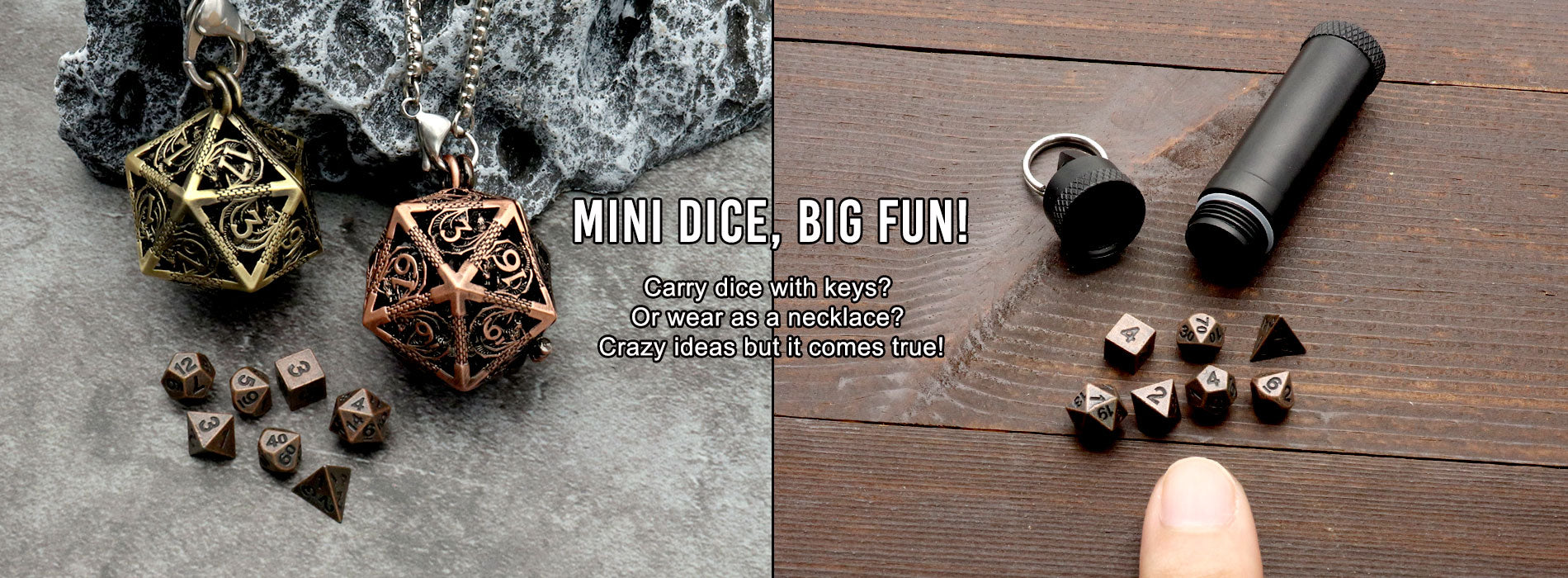 Mini size metal dnd dice set with portable dice case or keychain...
