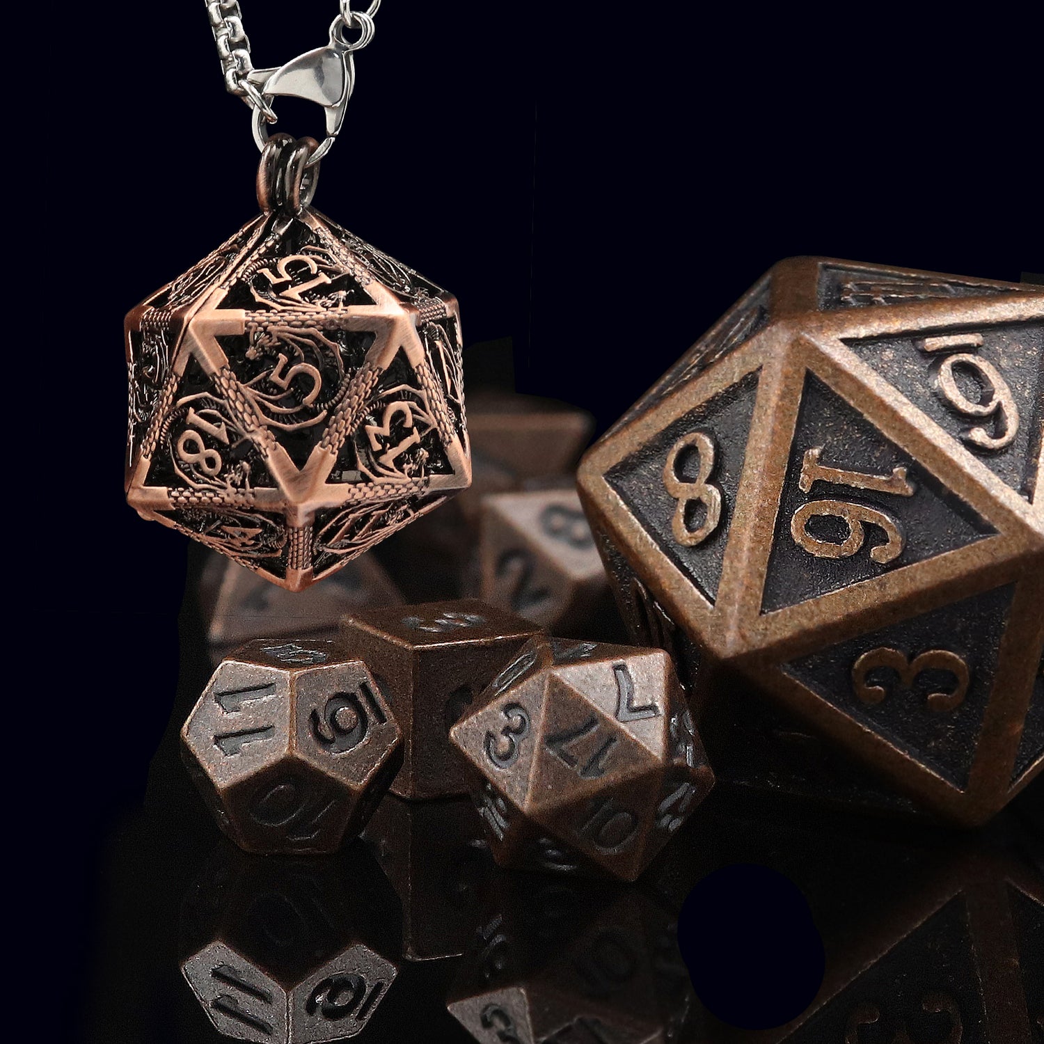 Metal dnd dice set with flowers. Unique design hefty dice d&d.