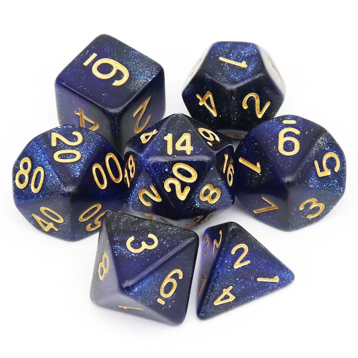 7PCS Nebula Glitter DND Dice Set-Blue Black Nebula