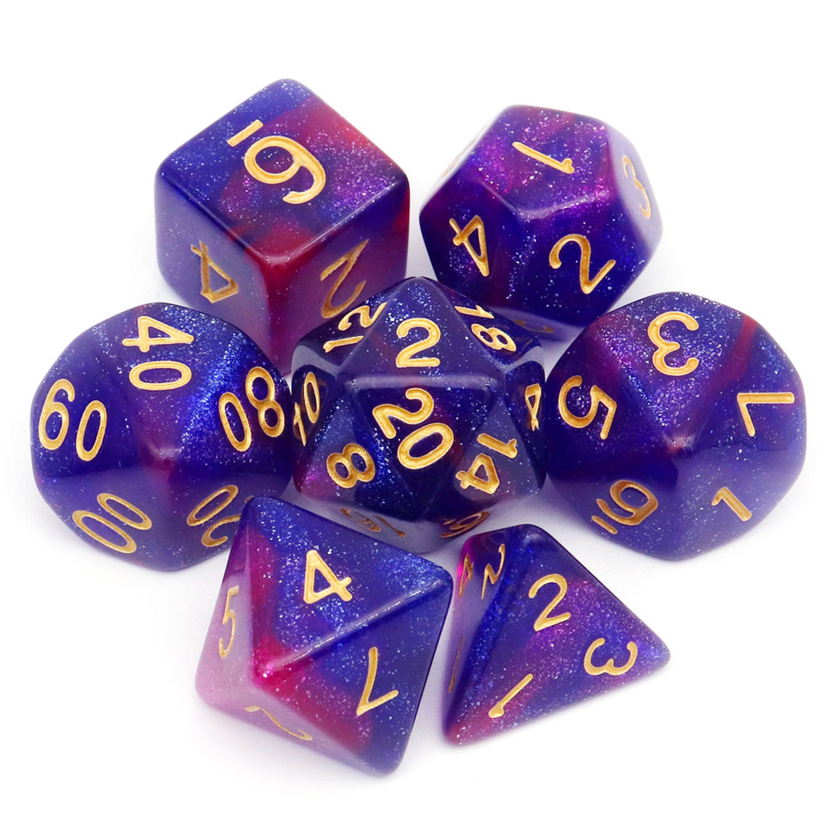 7PCS Nebula Glitter DND Dice Set-Purple Blue Nebula