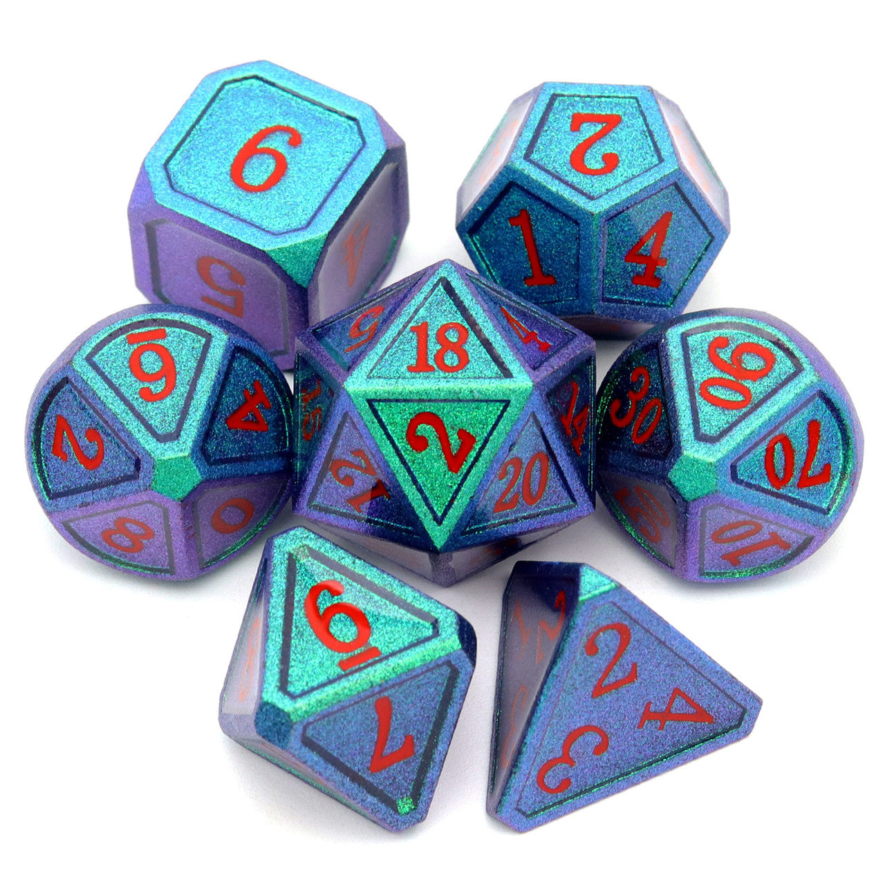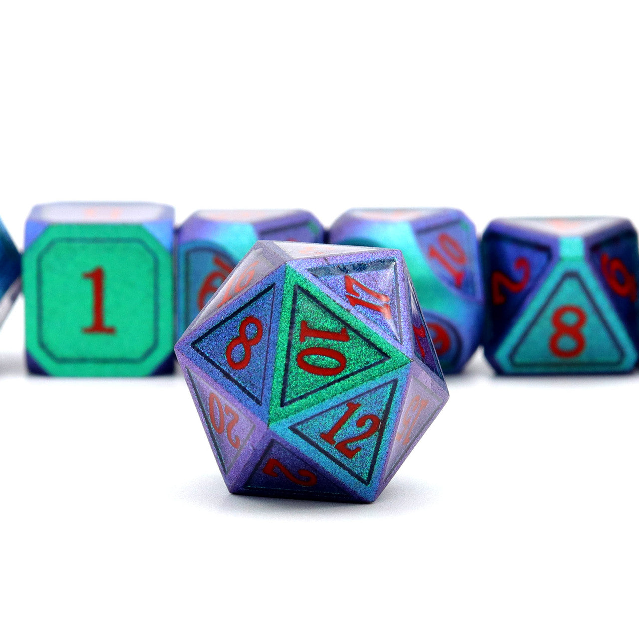 Haxtec Chameleon Metal DND Dice Color Changing Dice-Noble Green Purple Shift Red Numbers