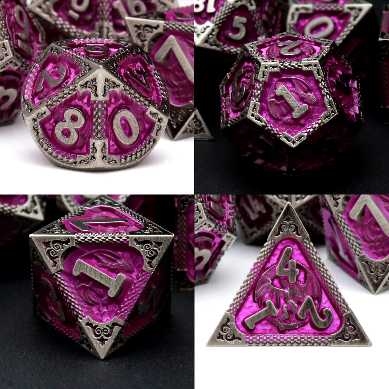 This special dragon pattern metal dice line offers hefty solid metal dice with vivid dragon and scales engraved.. Super cool dnd accessories to add more fun to the games.