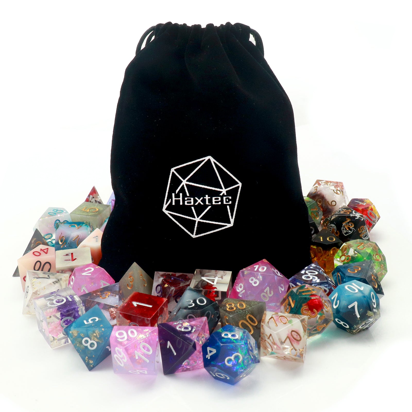 Haxtec Pound o Dice are a pound of random dice from any of our resin & acrylic dice lines. These by the weight dice bundles contain over 100 dice and are perfect for many of the most popular table top role playing games and miniature systems.