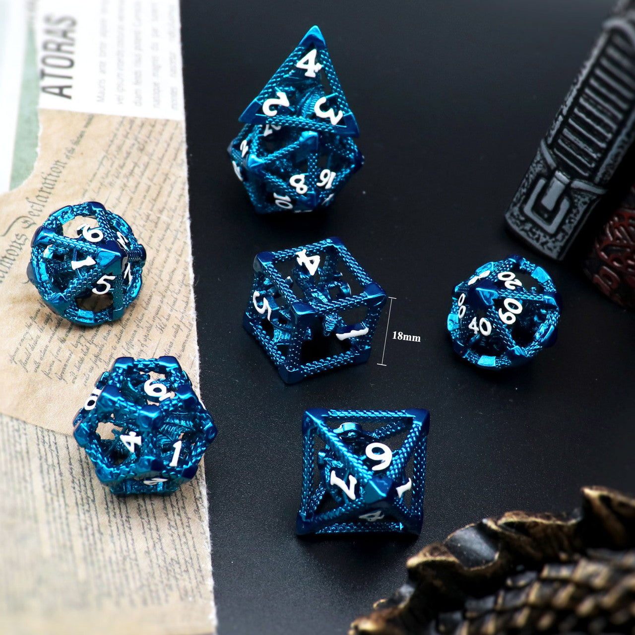 Haxtec Hollow Dragon Metal DND Dice Set With Leather Dice Bag for Dungoens and Dragons RPG Gift Blue Dragon