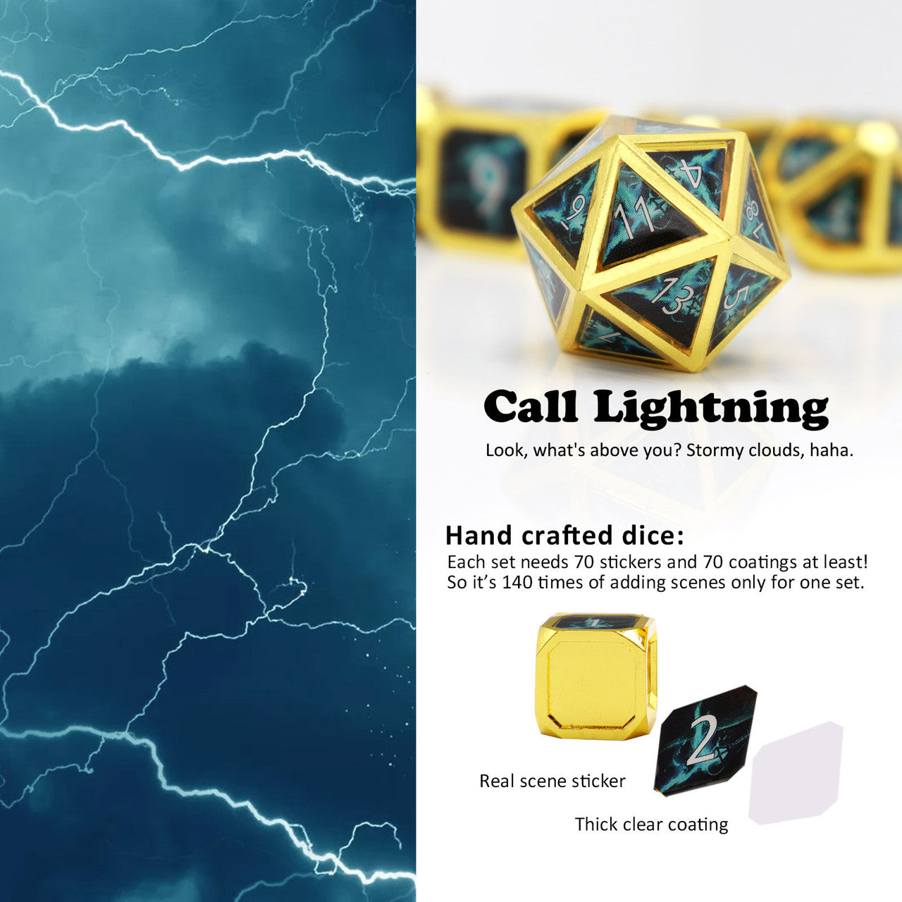 Haxtec Real Scene Metal Dice Set Gold Blue RPG Dice for DND 5E-Call Lightning