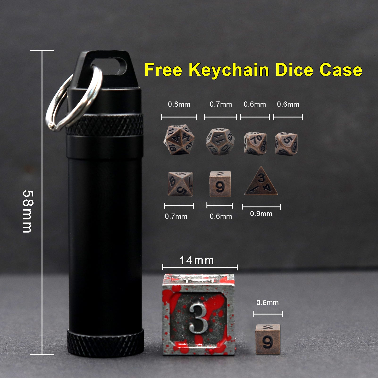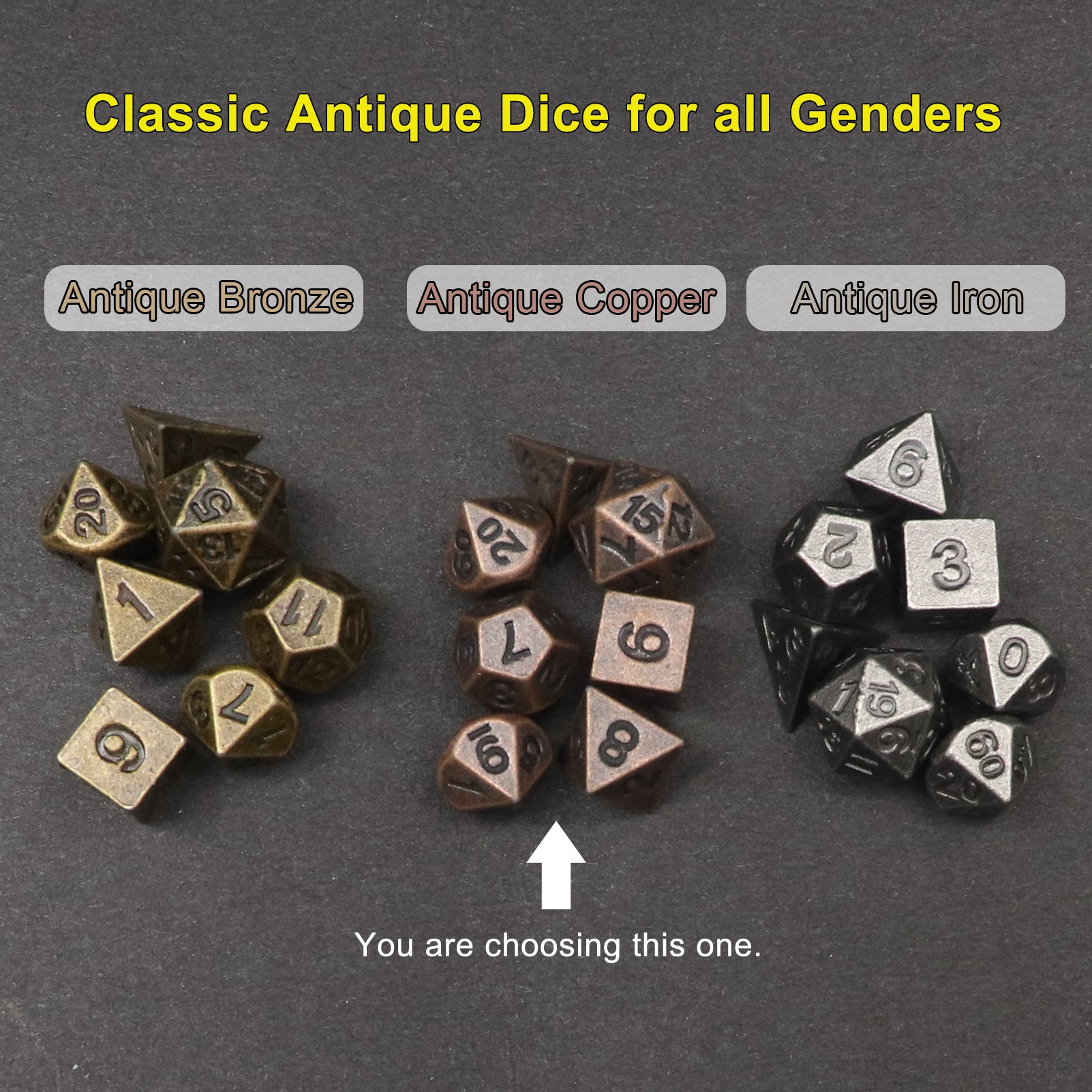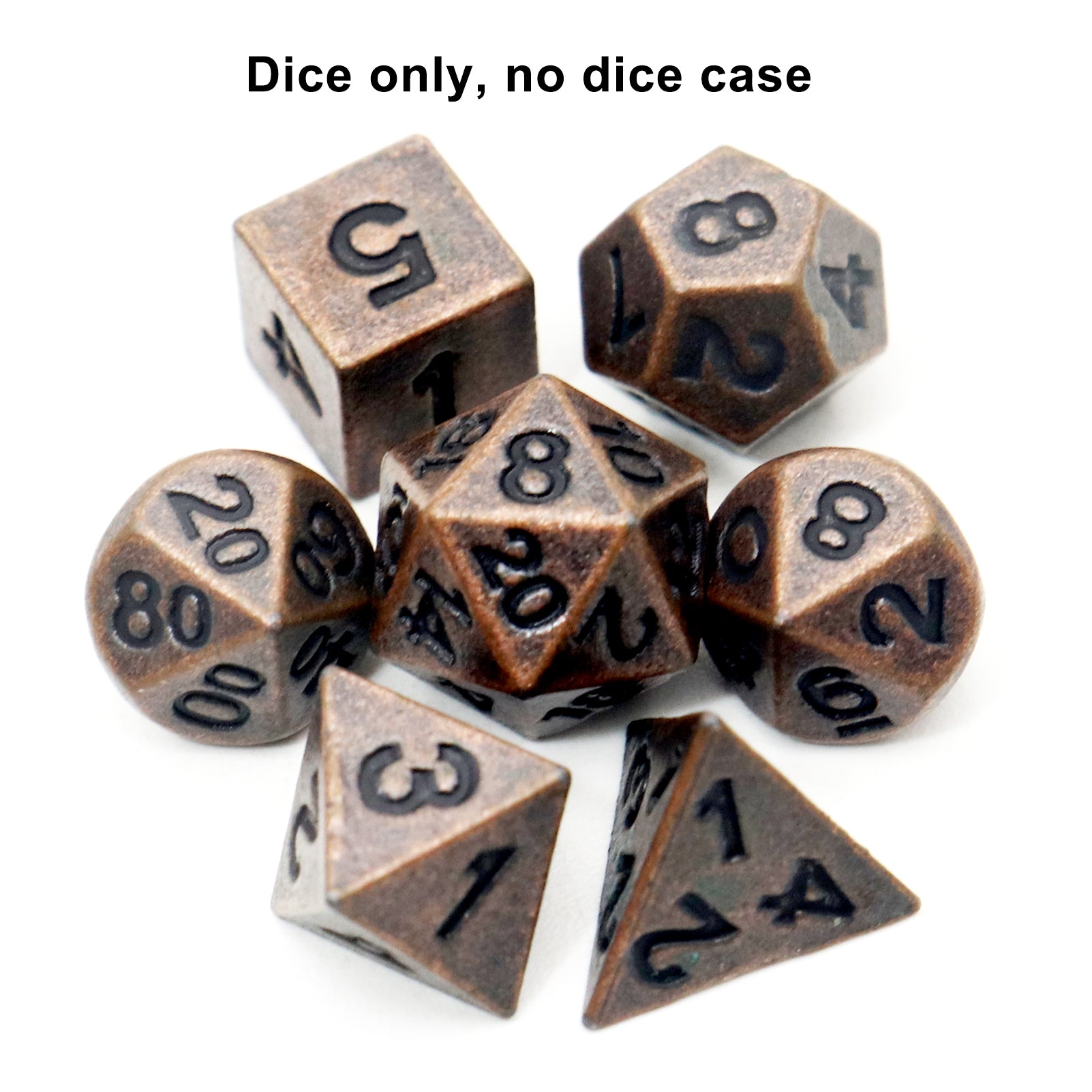 Haxtec Mini Metal Dice Set D&D for DND Game with Metal Keychain Dice Case-Antique Copper