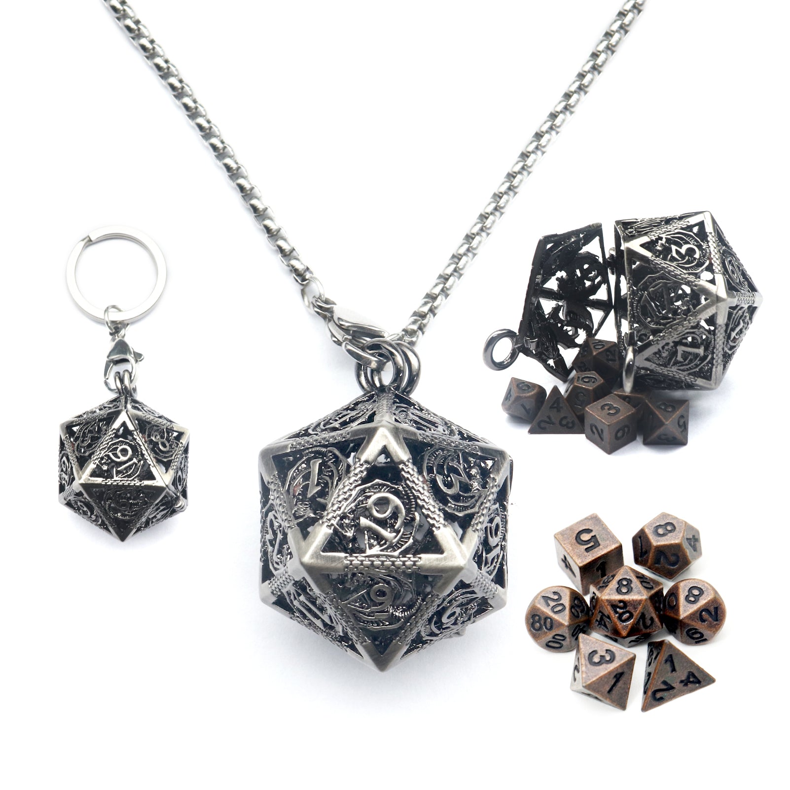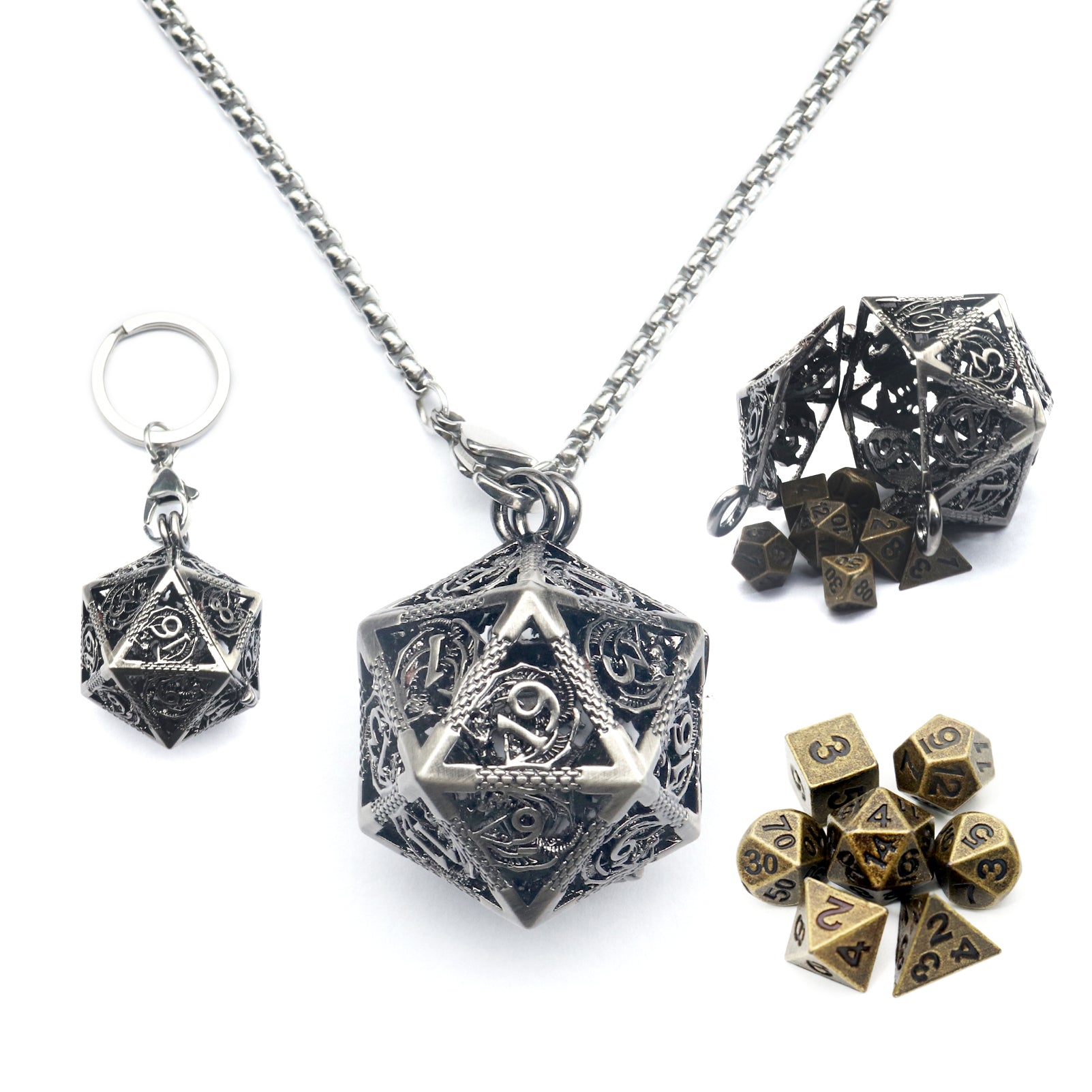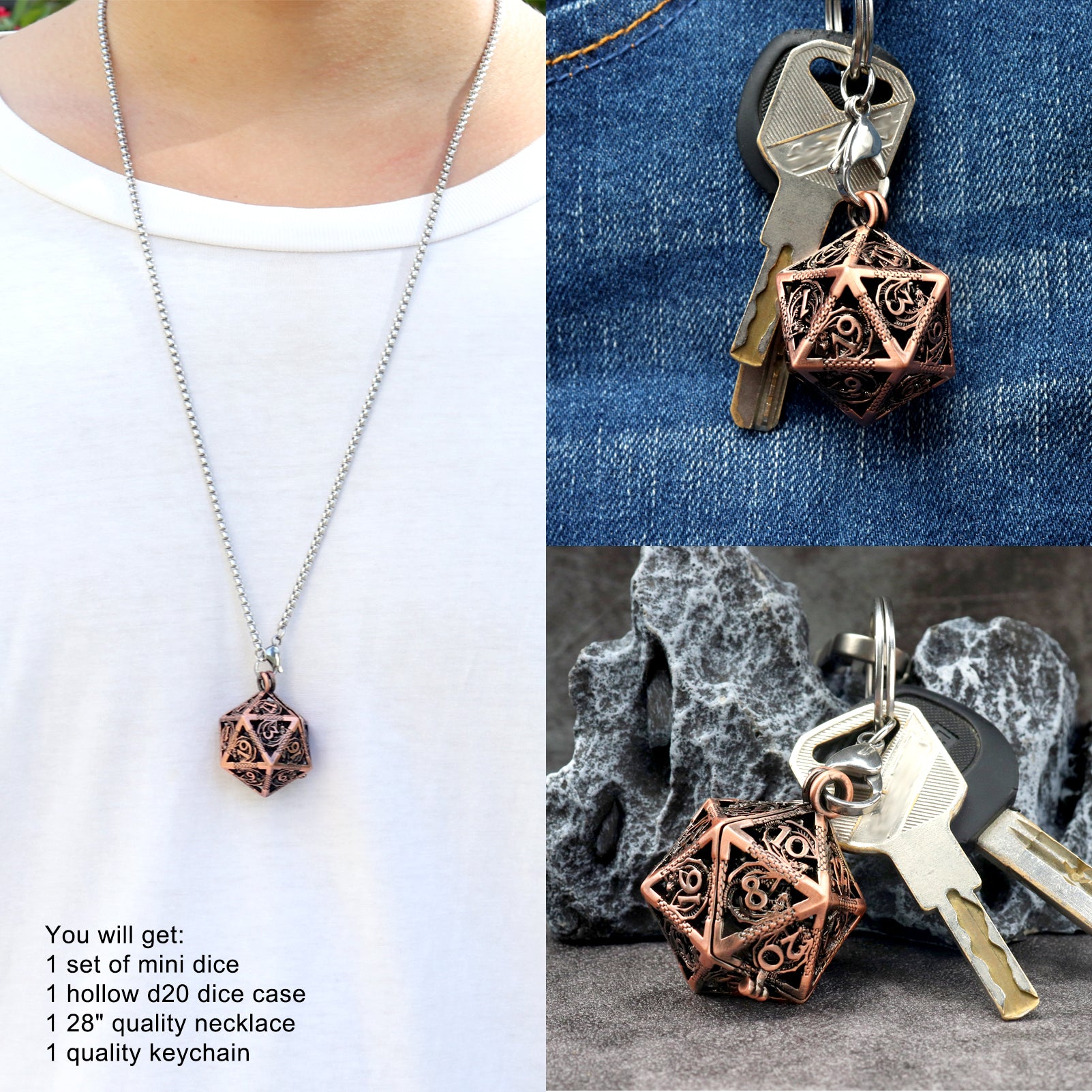 - With portable hollow d20/ d6 dice case that can be hang on keychain
