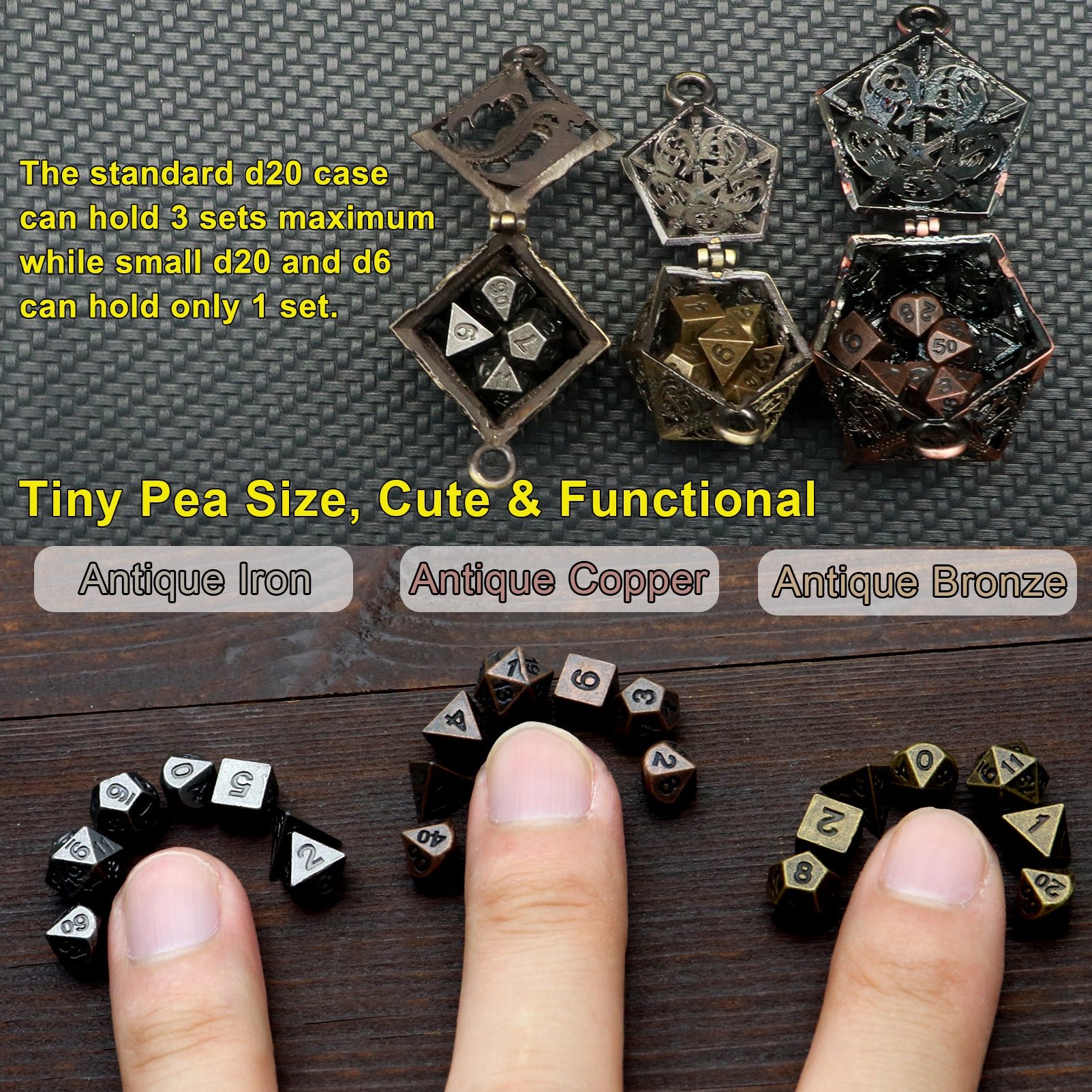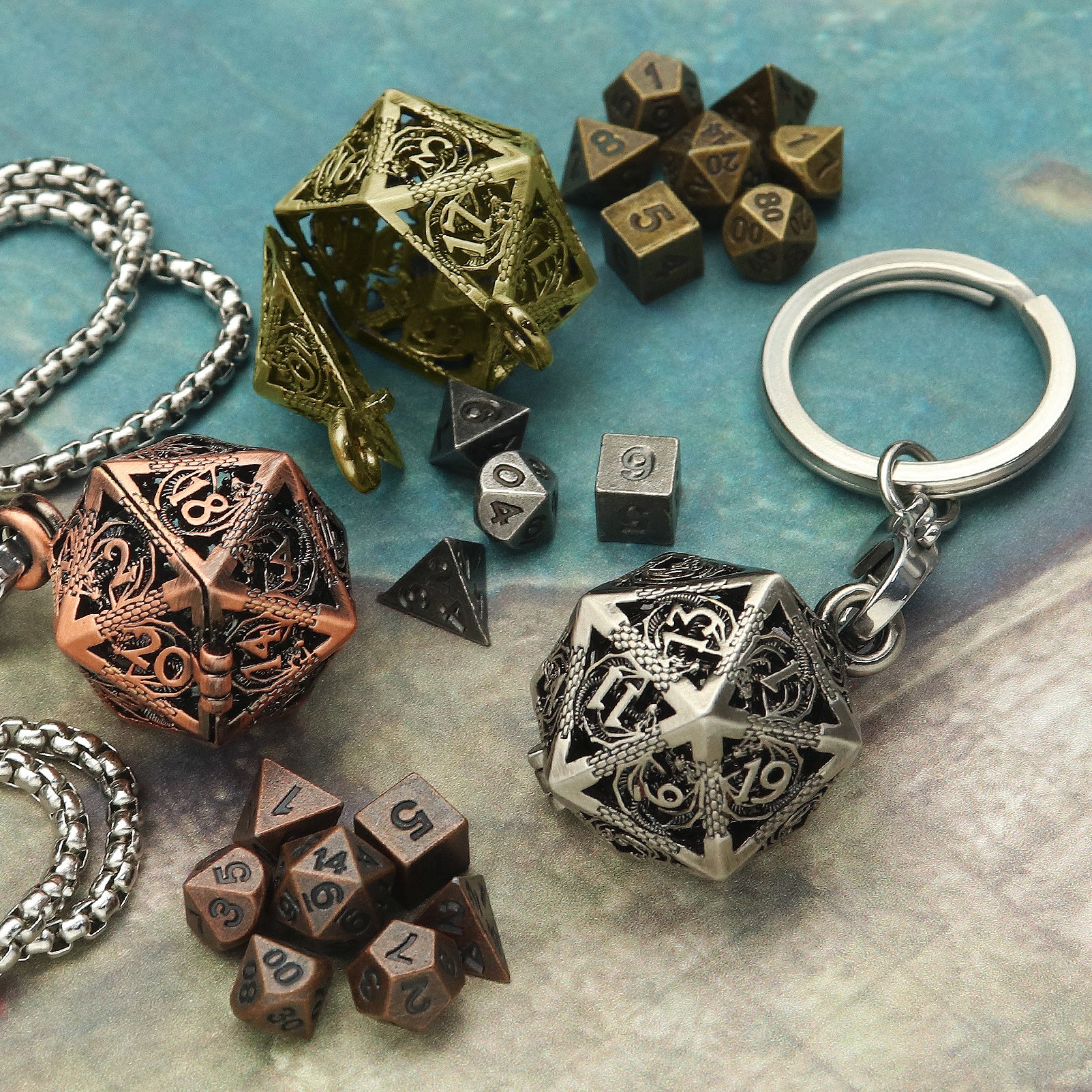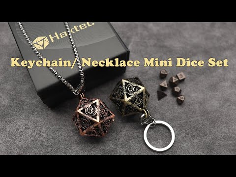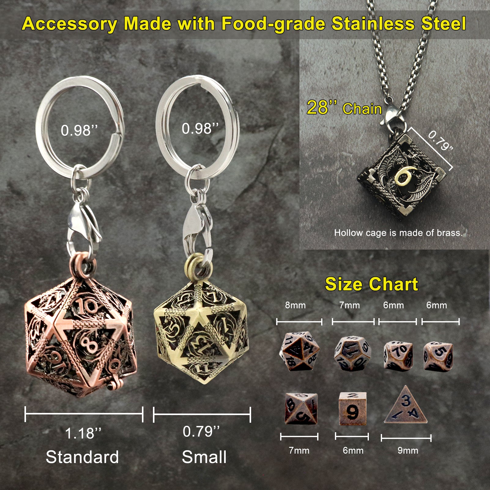 Haxtec Mini Metal Dice Set D&D with Hollow D20 Dice Case Metal Keychain Dice