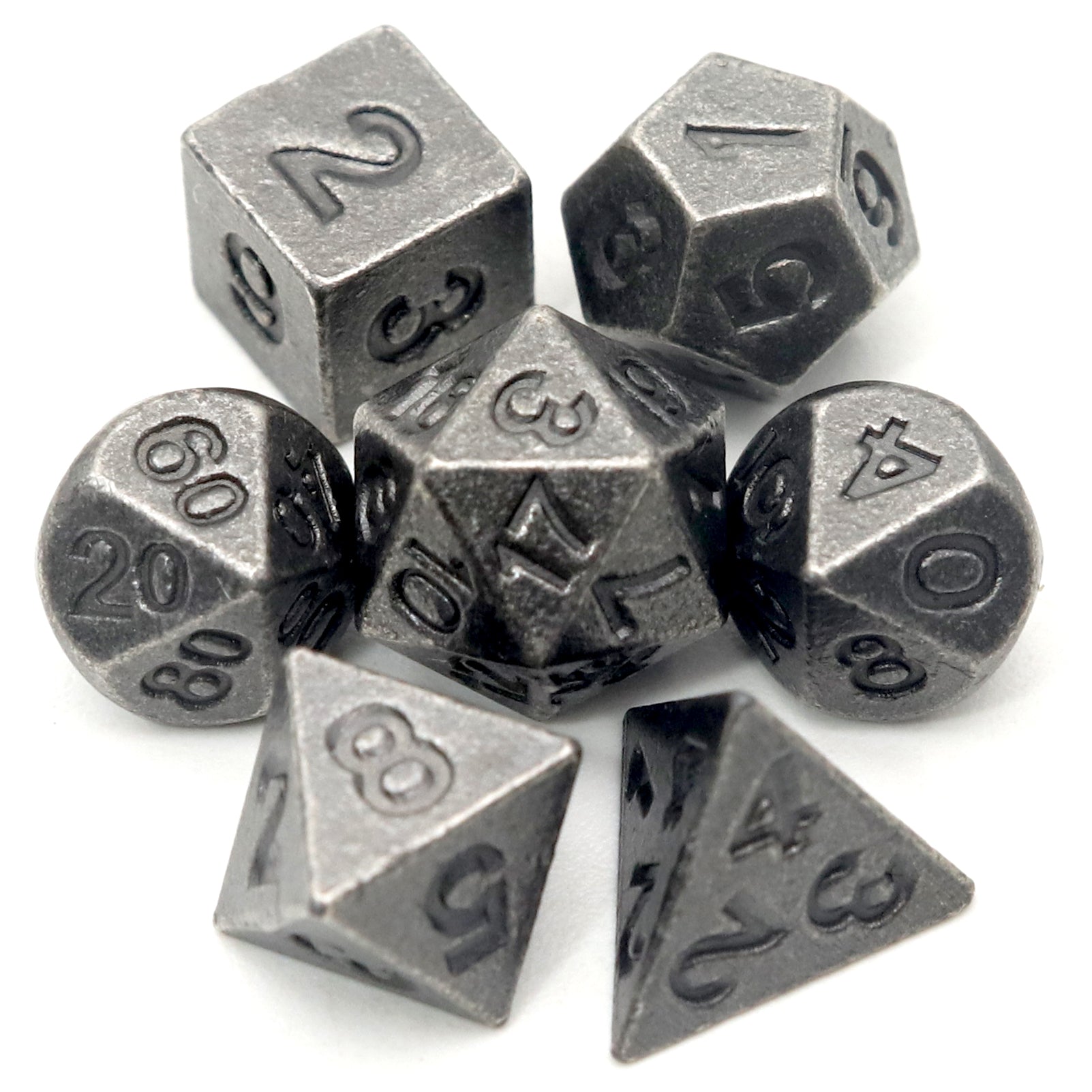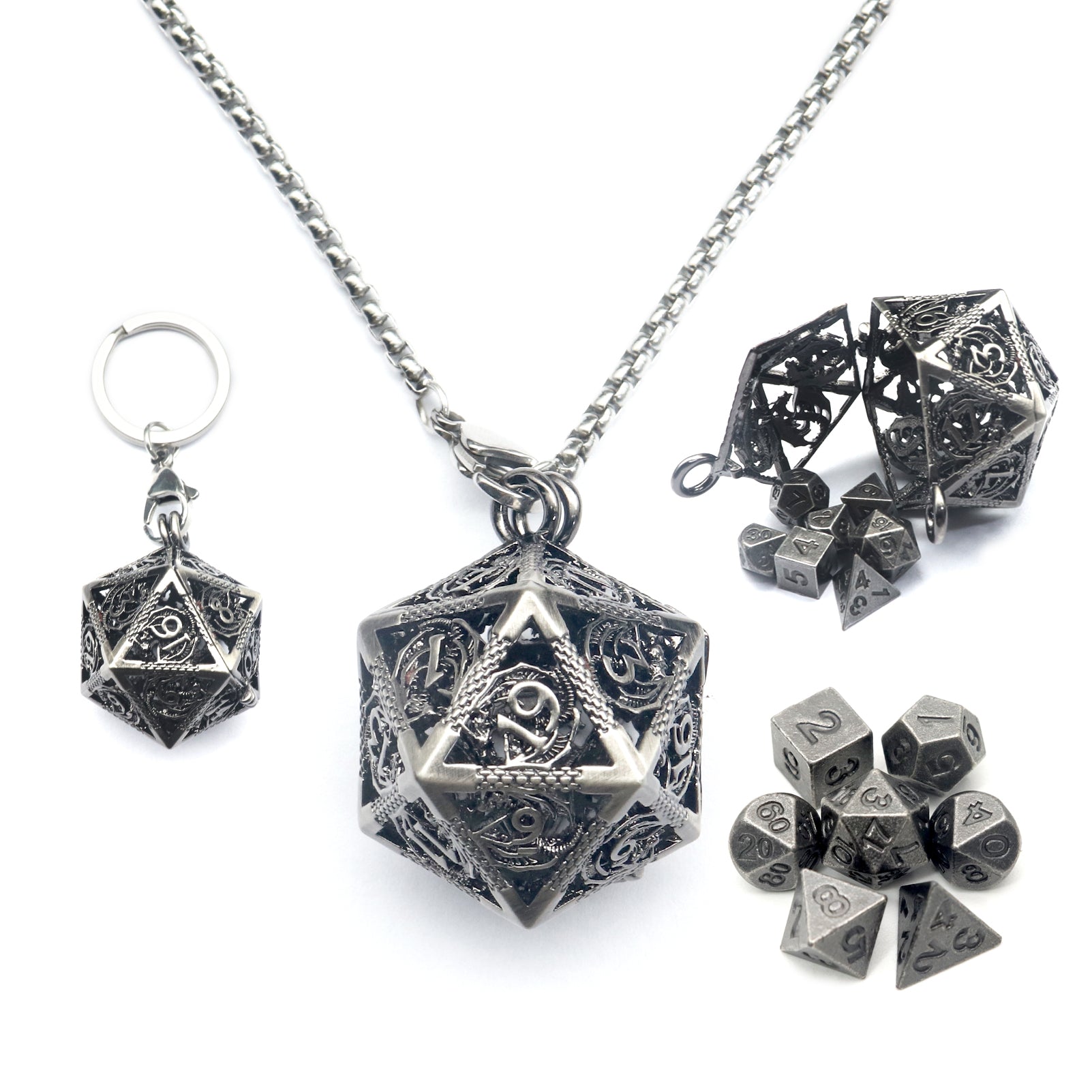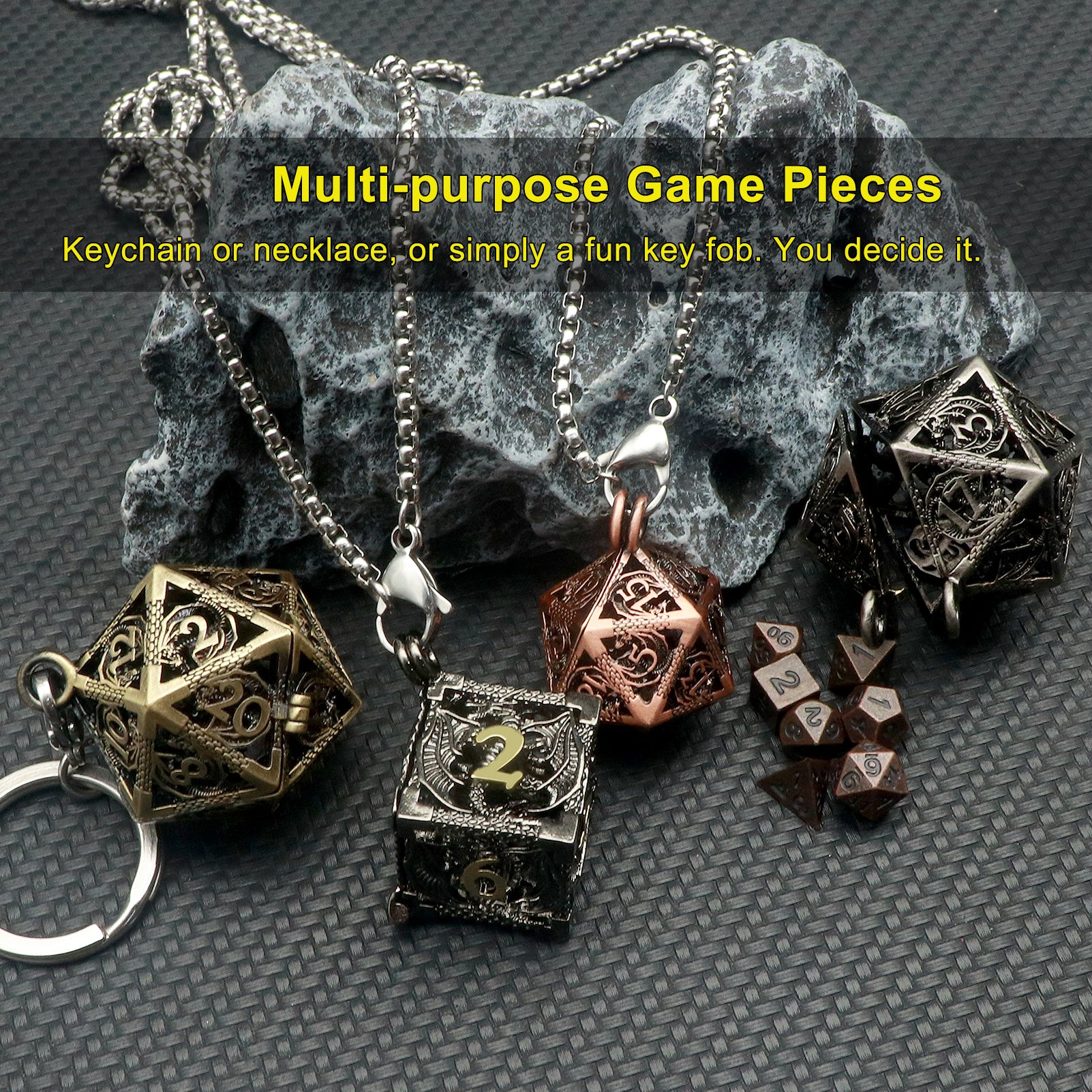 Haxtec Mini Metal Dice Set D&D with Hollow D20 Dice Case Metal Keychain Dice