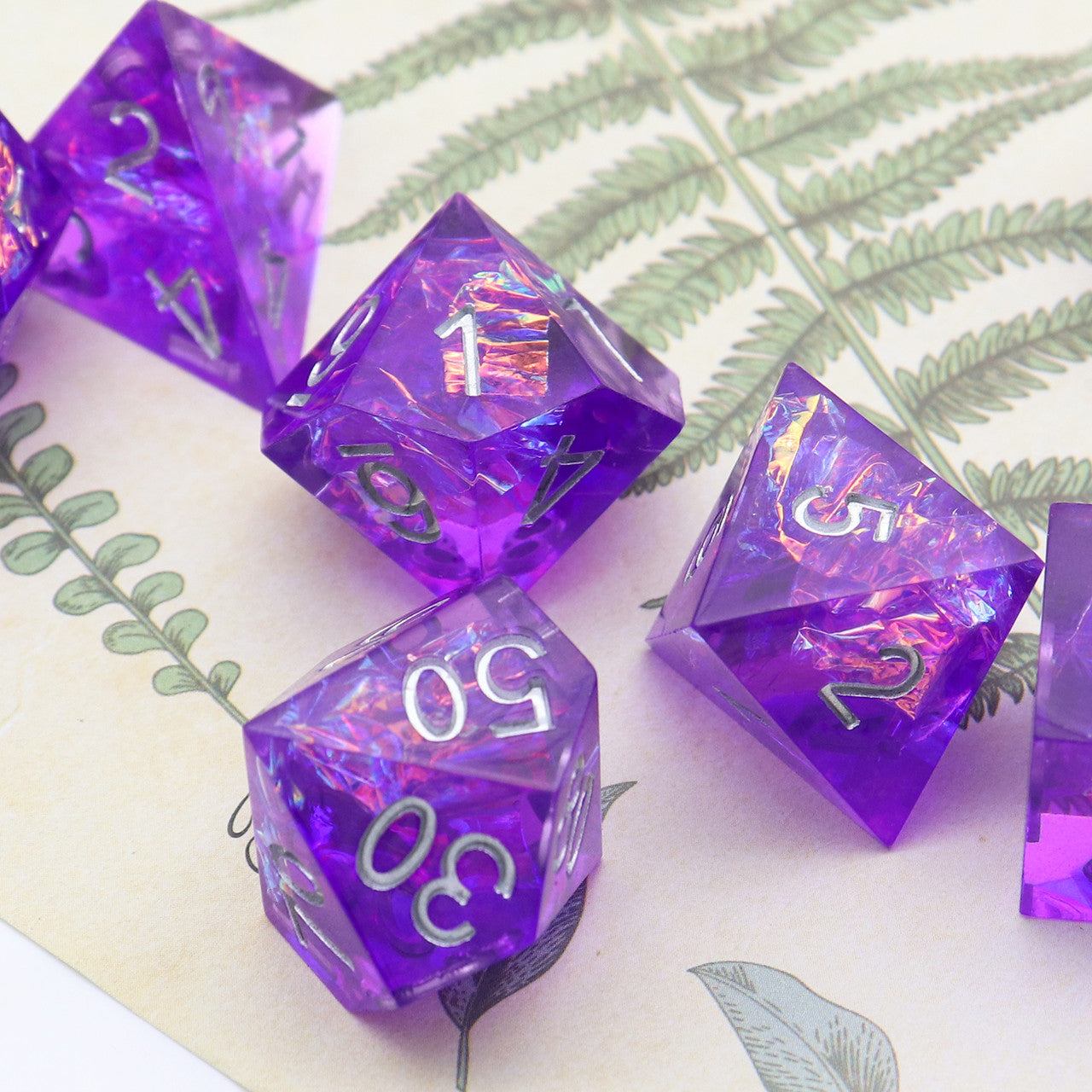 Haxtec Sharp Edge Dice Set Violet Purple Resin DND Dice Set With Velvet Dice Vault-Violet Galaxy