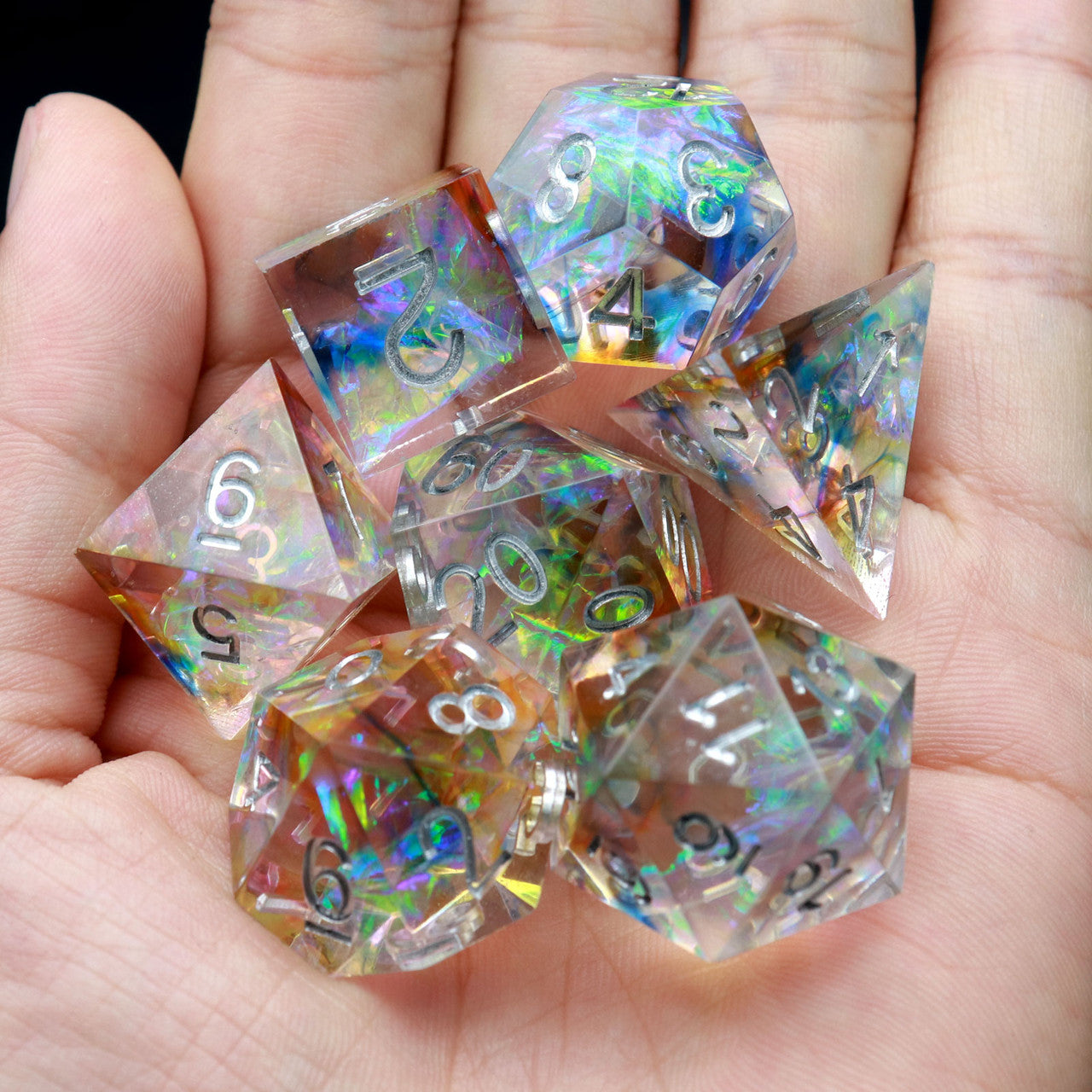 Haxtec Sharp Edge Dice Set Resin DND Dice Set With Velvet Dice Vault-Celestial Mirage